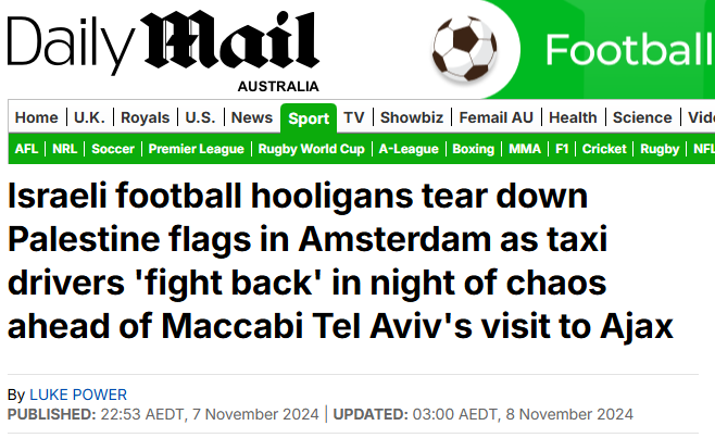 I am outraged by the hypocrisy of western leaders not condemning the ongoing genocide in Gaza and not condemning the violence of Maccabi Tel Aviv hooligans and not condemning them chanting genocidal lyrics before the game and not condemning them disrupting the minute of silence held for the victims of the flooding in Valencia.