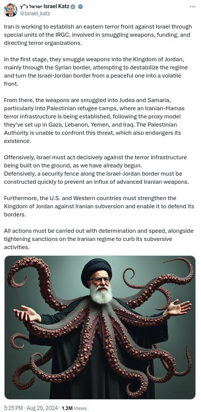 Now the Israeli Minister of Foreign Affairs is using an octopus to vilify Khamenei / Iran.