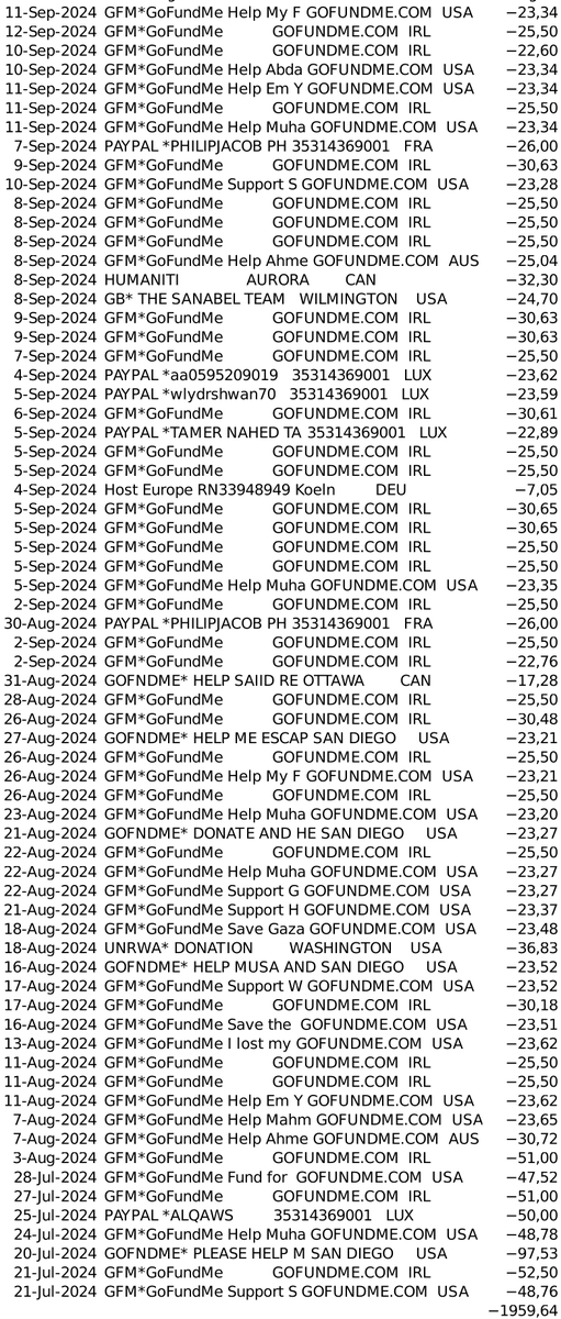 All non-essential expanses have been cut. Everything goes to Gaza.